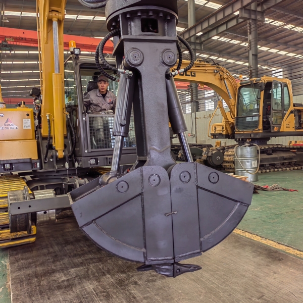 挖掘機(jī)貝型斗(也叫抓斗,哈殼斗)分為液壓回轉(zhuǎn)和不帶液壓回轉(zhuǎn)兩種。不帶液壓回轉(zhuǎn)的貝型斗采用挖掘機(jī)鏟斗油缸的油路,不用另外添加液壓閥塊及管路;帶液壓回轉(zhuǎn)的貝型斗要添加一套液壓閥塊及管路來(lái)控制,油缸配置活塞保護(hù)裝置。